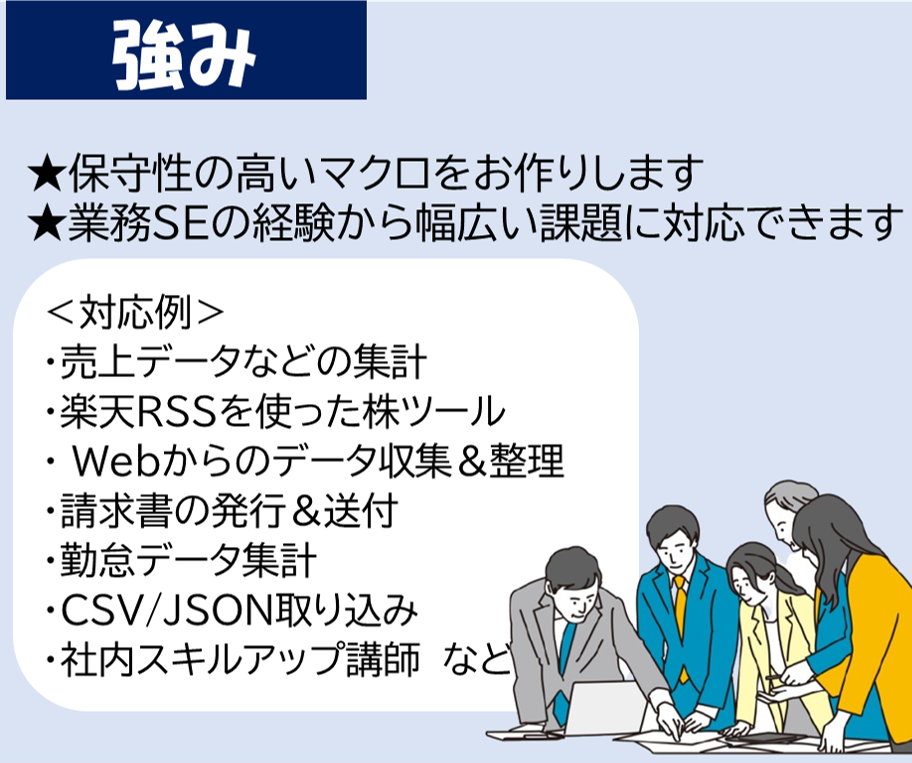 LWPプログラミング塾。エクセルとグーグルスプレッドシートを利用したシステム構築および実践的な講義を提案しています。